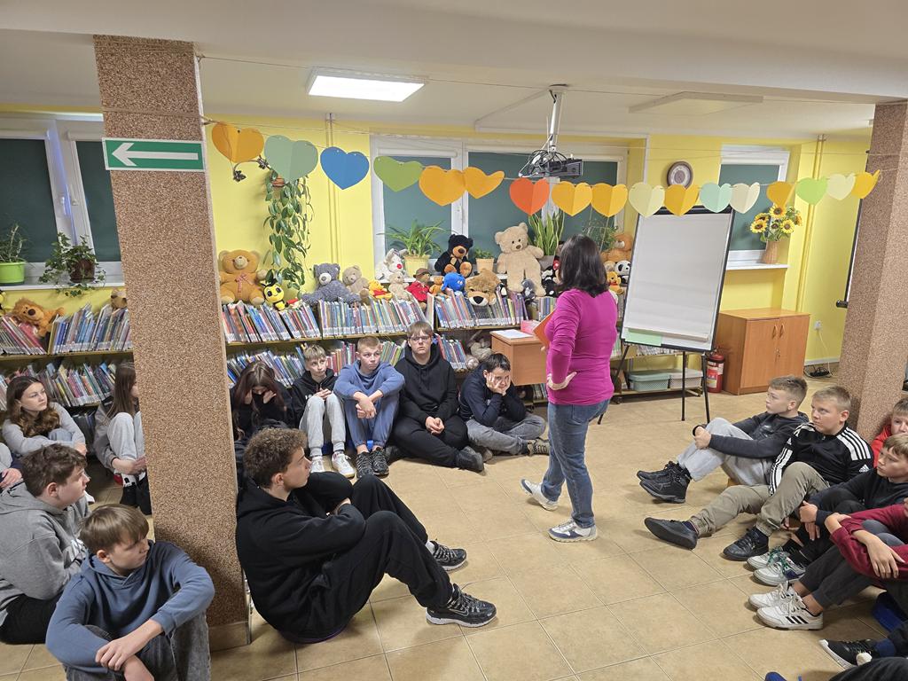 W piątek 21 listopada Bibliotekę odwiedziły dzieci z Szkoła Podstawowa im. Papieża Jana Pawła II w Blochach. Kiedy klasy IV i V rozważały czy „Czytać, czy nie czytać?”, z uczniami klas VI-VIII przeczytaliśmy i obejrzeliśmy „TORO” Karoliny Grabarczyk i Nika Jaworowska Illustrations Painting. Mówiliśmy o tożsamości osobistej, samoakceptacji, akceptacji i tolerancji. Przyjrzeliśmy się postawie konformistycznej i nonkonformistycznej. Na koniec podkreśliliśmy, że kiedy pojawiają się trudne do przepracowania tematy, trzeba zwrócić się o pomoc do przyjaciół i dorosłych, którzy wzbudzają nasze zaufanie.