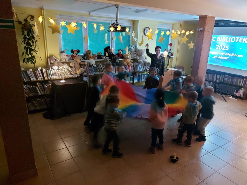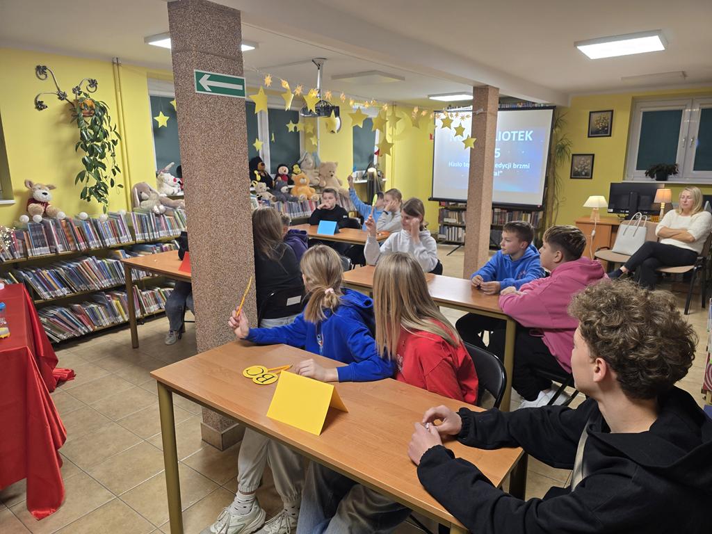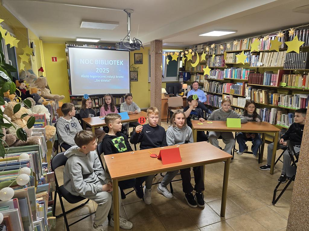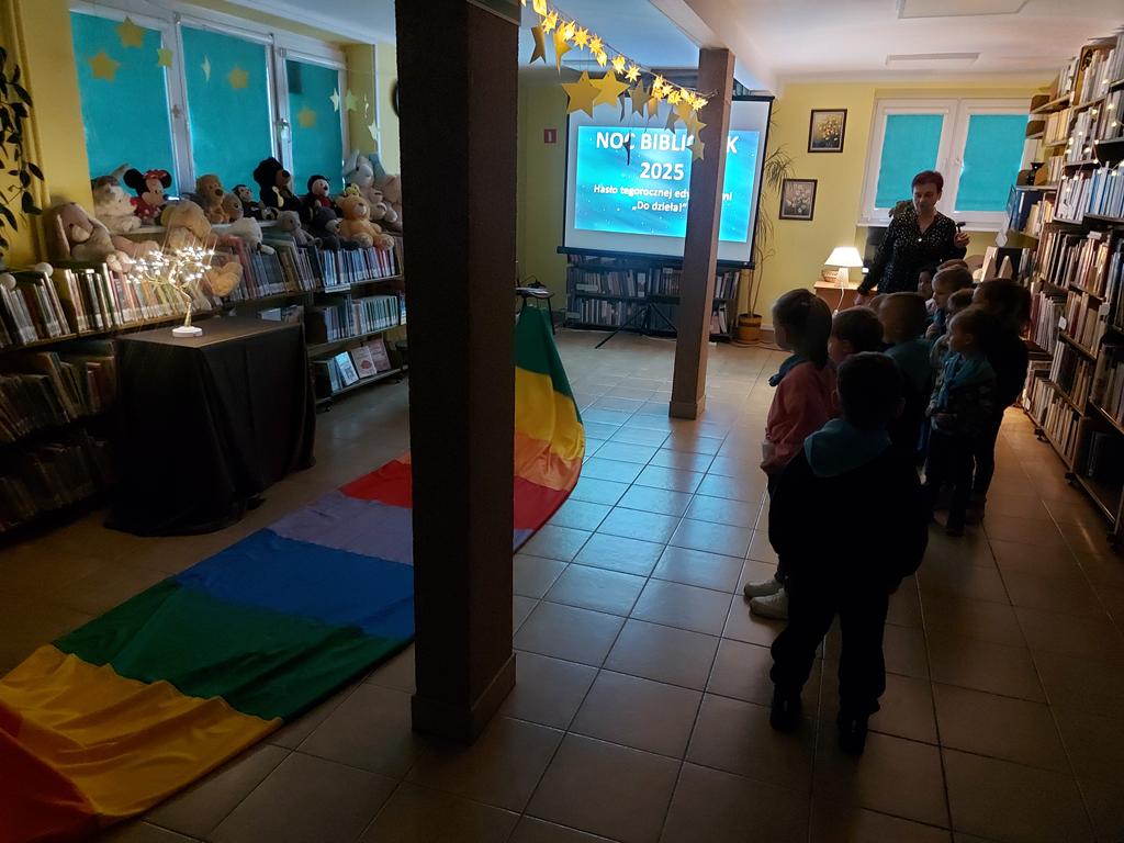 Biblioteka Pedagogiczna w Wyszkowie w ramach XI edycji Nocy Bibliotek w dniach 17 i 20 października 2025 r. gościła grupy przedszkolne z Przedszkole Niepubliczne „Przyjaciele Kubusia” w Wyszkowie i uczniów ze Szkoła Podstawowa nr 2 im. Władysława Broniewskiego w Wyszkowie. Zgodnie z hasłem tegorocznej edycji „Do dzieła!” dzieci, młodzież i ich opiekunowie uczestniczyli w grach i zabawach oraz w turniejach wiedzy zorganizowanych przez Bibliotekę. W piątek 17 października rozpoczęliśmy od spotkania z przedszkolakami pod hasłem „Noc Bibliotek kreatywnie obchodzimy i z humorem się bawimy”. Tańczyliśmy, śpiewaliśmy, skakaliśmy i rozwiązywaliśmy zagadki w nastrojowych, klimatycznych warunkach w sali udekorowanej specjalnie na tę okoliczność. Później spotkaliśmy się z młodzieżą ze szkoły podstawowej. Uczniowie stanęli w szrankach turnieju „Zgadnij i nie odpadnij!”. Zmagania były trudne, zaciekłe i momentami tak emocjonujące, że wzbudzały skrajne emocje od śmiechu do łez. Zwycięskie drużyny otrzymały nagrody, a całe grupy nagrody pocieszenia. W poniedziałek 20 października powtórnie otworzyliśmy nasze drzwi dla dzieci i młodzieży. Ponownie rozgorzały rozgrywki turniejowe, a emocje sięgnęły zenitu. Na zakończenie obchodów spotkaliśmy się jeszcze raz z przedszkolakami, by w miłej i przyjaznej atmosferze zakończyć tegoroczne świętowanie Nocy Bibliotek 2025. Serdecznie dziękujemy wszystkim uczestnikom naszej wspólnej akcji. W przyszłym roku spotkamy się ponownie, by celebrować tę wyjątkową noc. Szczególne podziękowania kierujemy w stronę opiekunów grup przedszkolnych i szkolnych, którzy przybyli do nas z dziećmi. Dziękujemy bardzo Pani Iwonie Depcie – szkolnej bibliotekarce ze Szkoły Podstawowej Nr 2 im. Władysława Broniewskiego – za pomoc w organizacji zajęć.