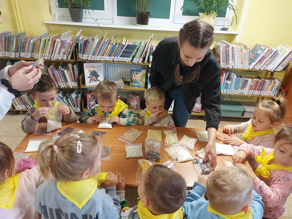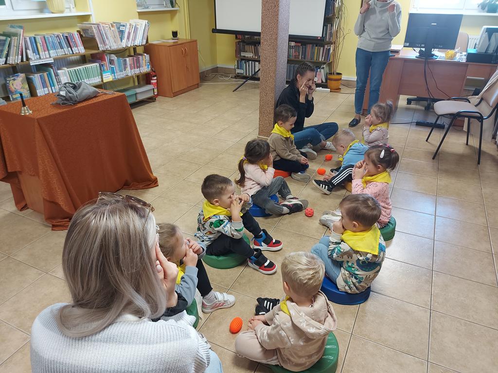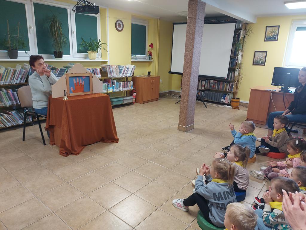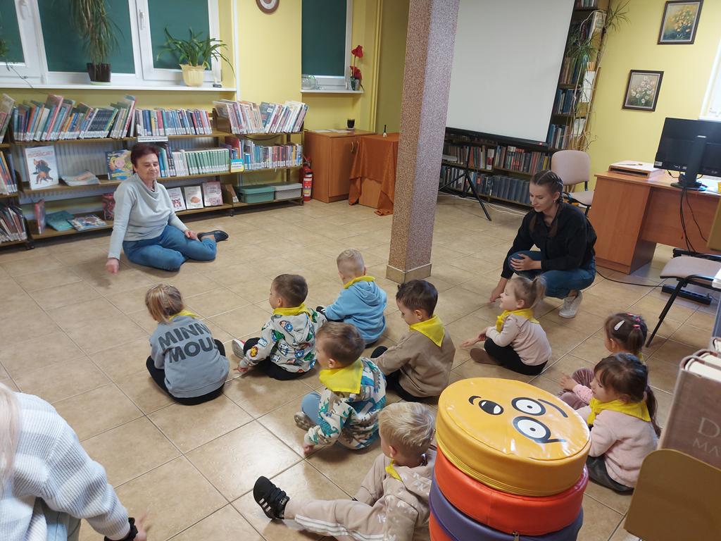 Dnia 24.09.25 r. i 25.09.25 r. w ramach współpracy z Przedszkole nr 1 „Jedyneczka” w Wyszkowie oraz z Przedszkole Niepubliczne „Przyjaciele Kubusia” w Wyszkowie, odbyły się trzy spotkania z przedszkolakami. W zajęciach uczestniczyły dzieci z grup: „Motylki”, ”Jagódki” i „Kangurki”. Dzieci wysłuchały opowiadania „O panach Palcach” J. Brudzewskiego oraz wzięły udział w edukacyjnych zabawach paluszkowych.