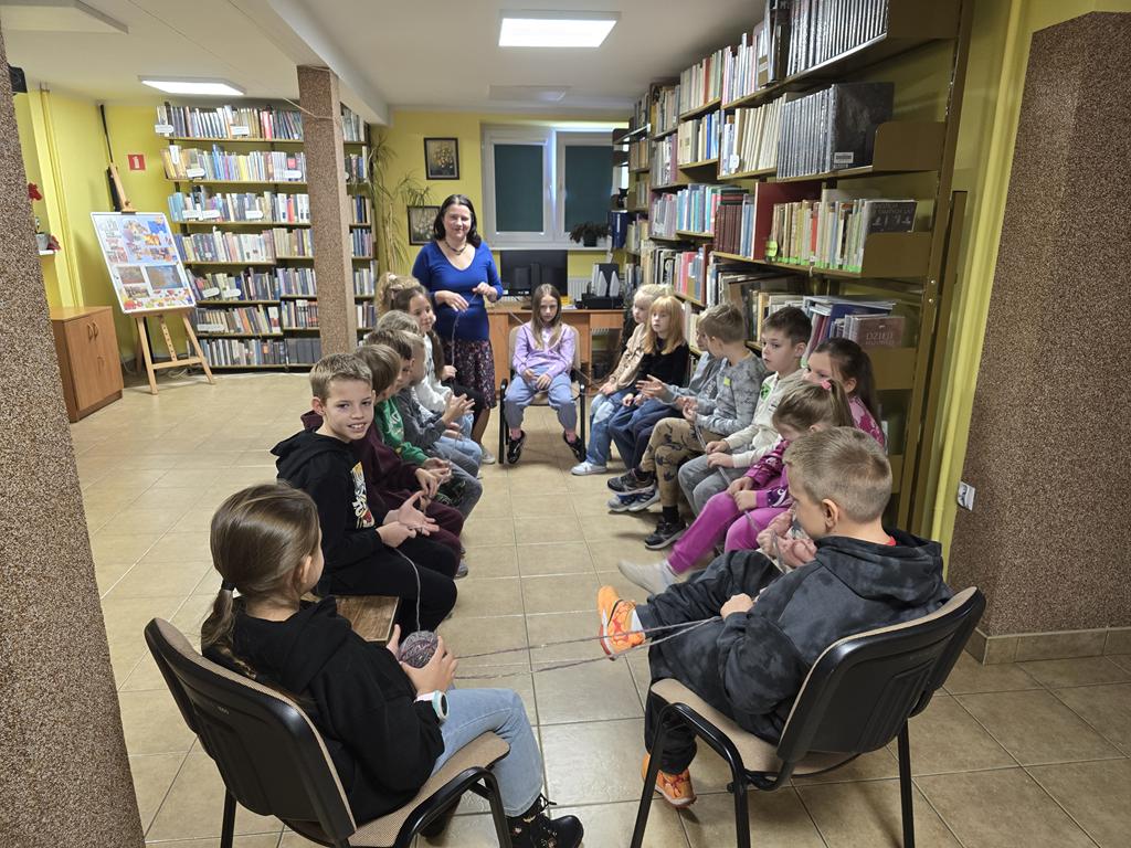 W poniedziałek Bibliotekę odwiedziła klasa IIa ze Szkoła Podstawowa nr 2 im. Władysława Broniewskiego w Wyszkowie. Dzieci wysłuchały opowieści Patrice Karst „Niewidzialna nić”. Rozmawialiśmy o uczuciach i więzi łączącej najbliższych członków rodziny i kolegów w klasie szkolnej. Gry i zadania wykonane przez dzieci, miały im przybliżyć tematykę uczuć i emocji, jakie odczuwają w różnych sytuacjach życiowych. Salę ozdobiła „niewidzialna nić” z kolorowymi papierowymi sercami, na których dzieci zapisały piękne dobrymi słowa miłości.