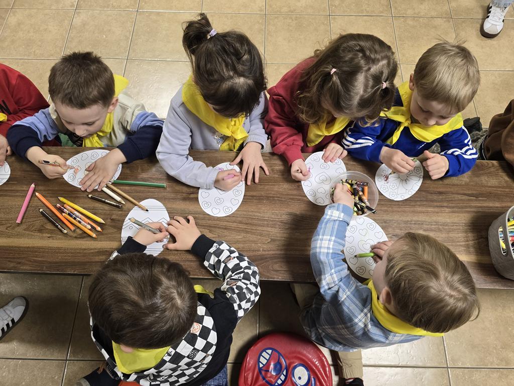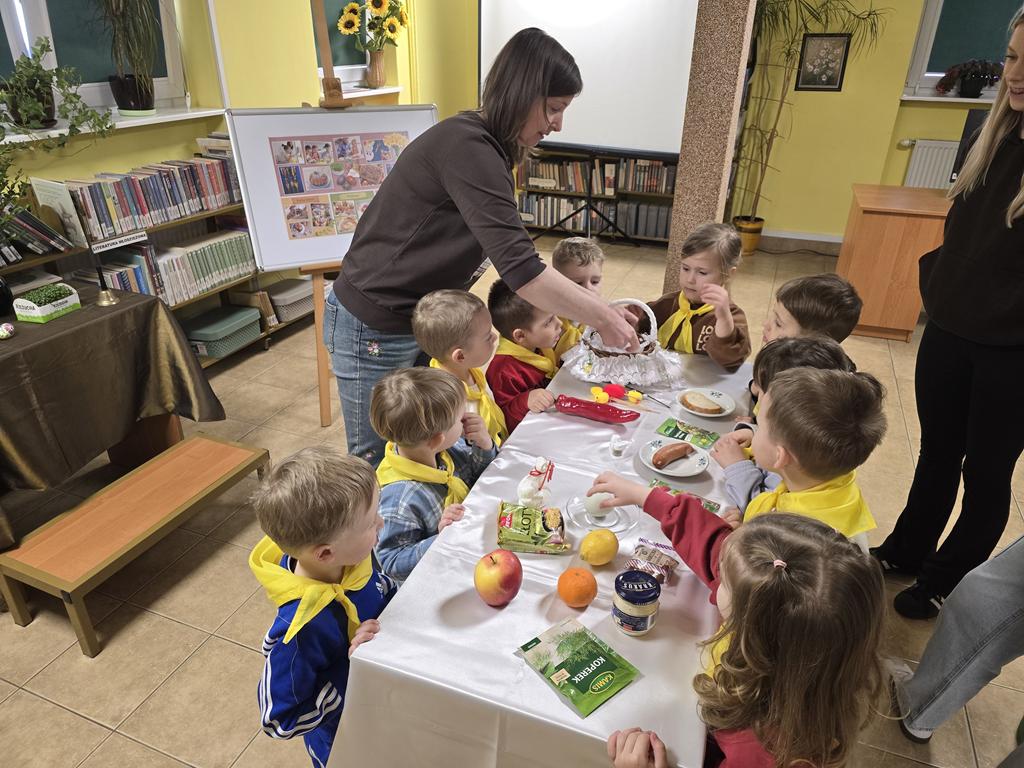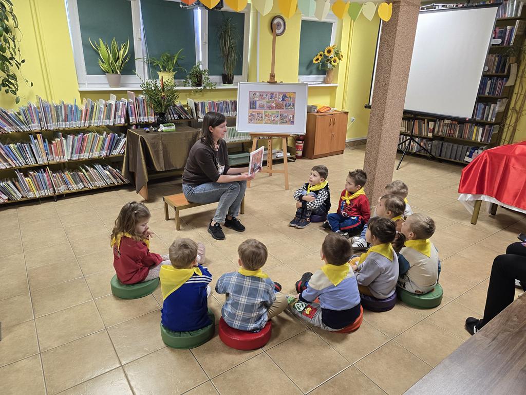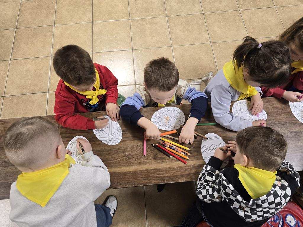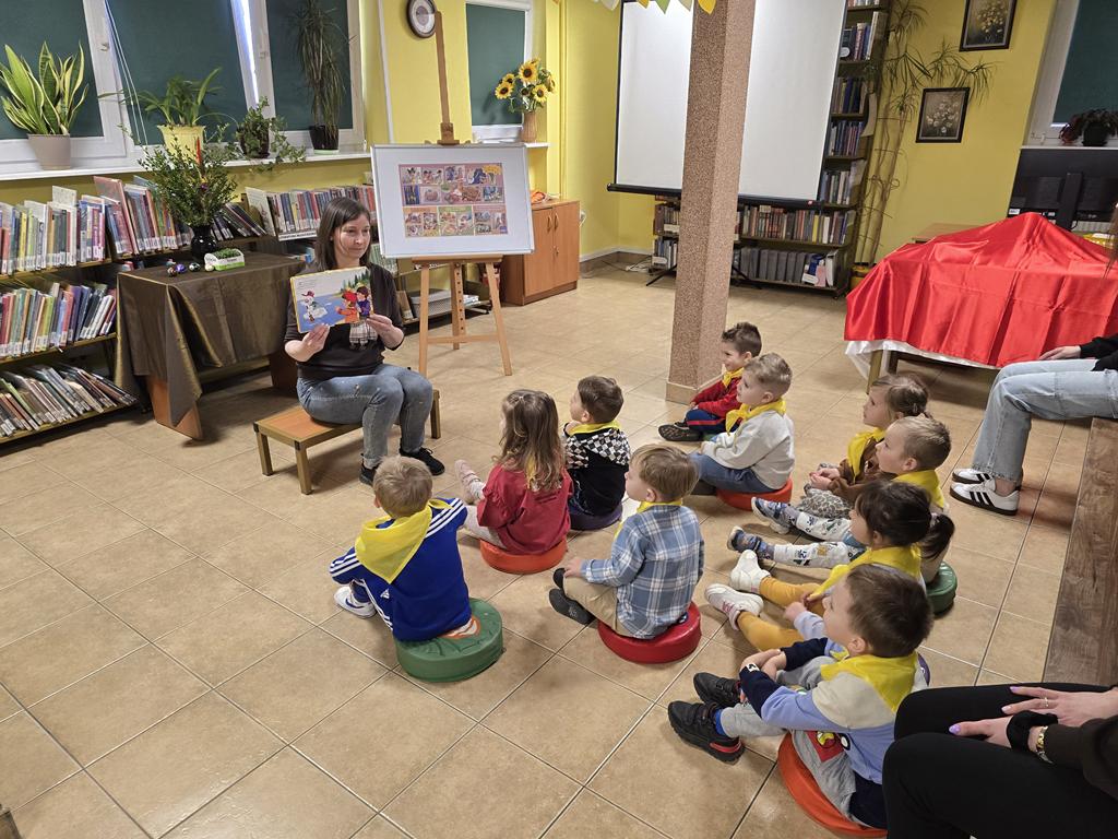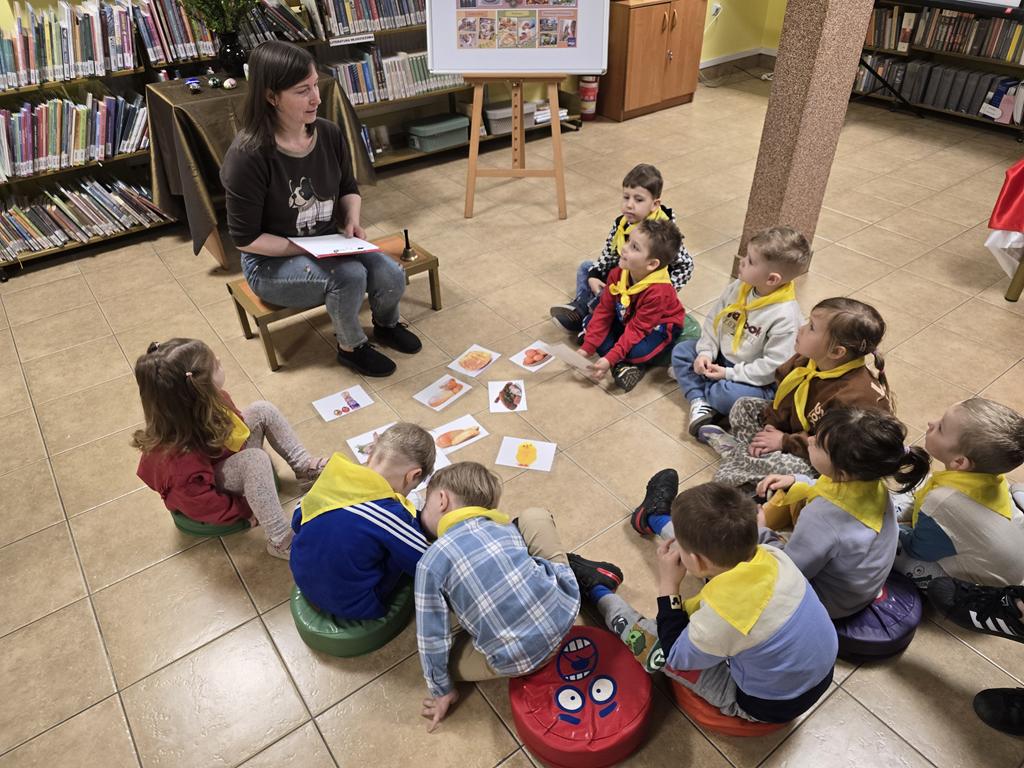 Dnia 24.03.2026 r. odwiedziły Bibliotekę „Kangurki” z Przedszkole Niepubliczne „Przyjaciele Kubusia” w Wyszkowie. Rozmawialiśmy o symbolach i tradycjach wielkanocnych na podstawie wiersza „O wiośnie, kurczętach i wielkanocnych świętach” Urszuli Kozłowskiej. Następnie przygotowaliśmy koszyczek wielkanocny i pomalowaliśmy pisanki. ![]()