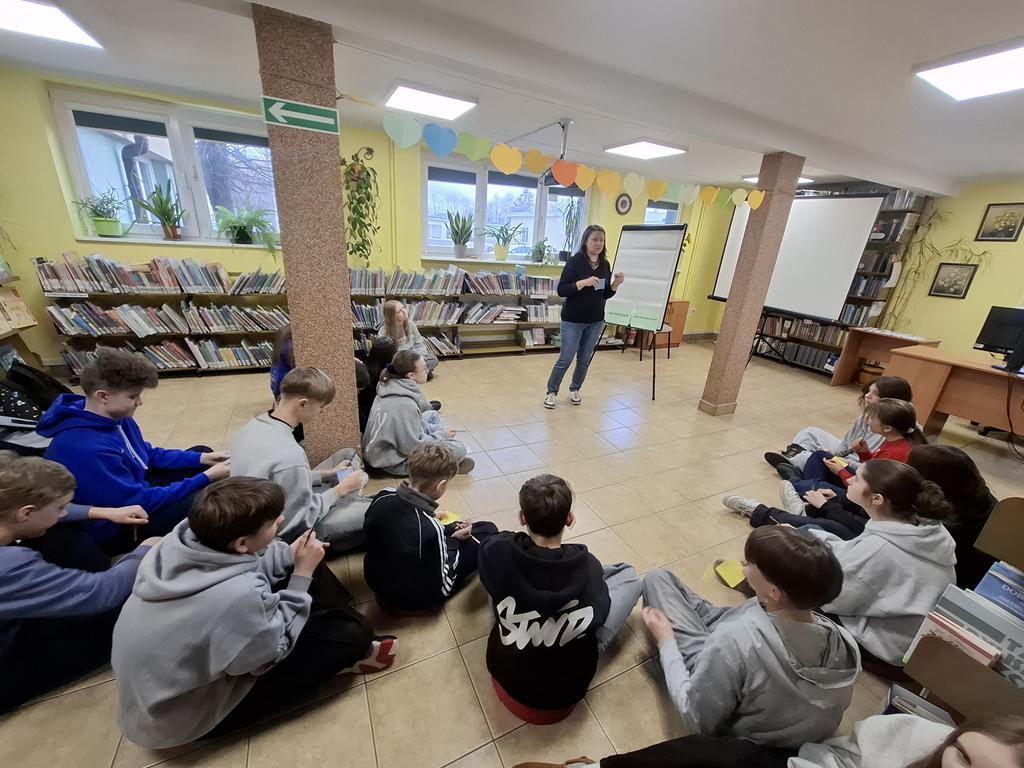 W środę 25 lutego Bibliotekę odwiedziły dzieci z klas VII i VIII ze Szkoła Podstawowa im. św. Stanisława Kostki w Jackowie Górnym. Przeczytaliśmy i obejrzeliśmy „TORO” Karoliny Grabarczyk i Nika Jaworowska Illustrations Painting. Rozmawialiśmy o tożsamości osobistej, samoakceptacji, akceptacji i tolerancji, o problemach nastoletniego życia i o tym, że kiedy pojawiają się trudne do przepracowania tematy, warto prosić o pomoc przyjaciół i zaufane osoby dorosłe. Na koniec uczniowie podzielili się z prowadzącą wrażeniami nt. przeprowadzonych zajęć.