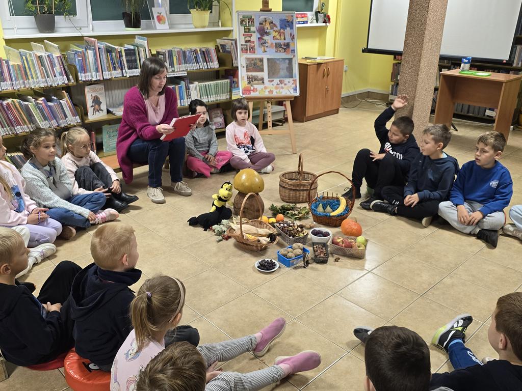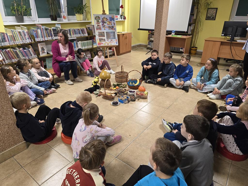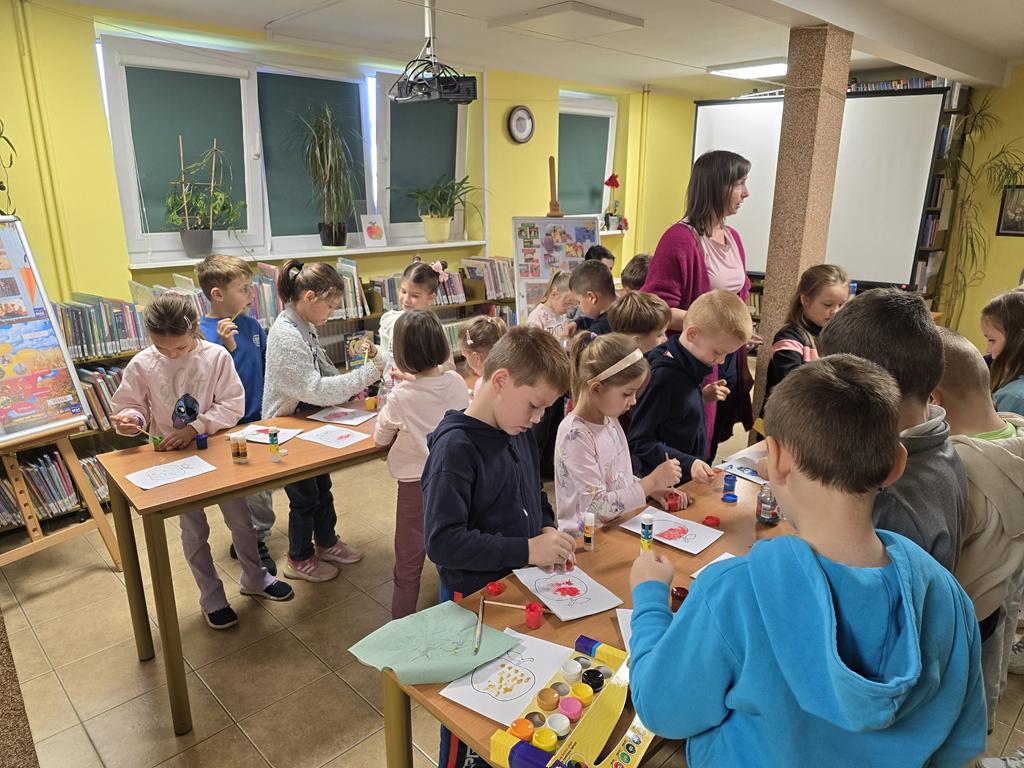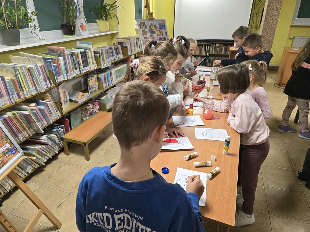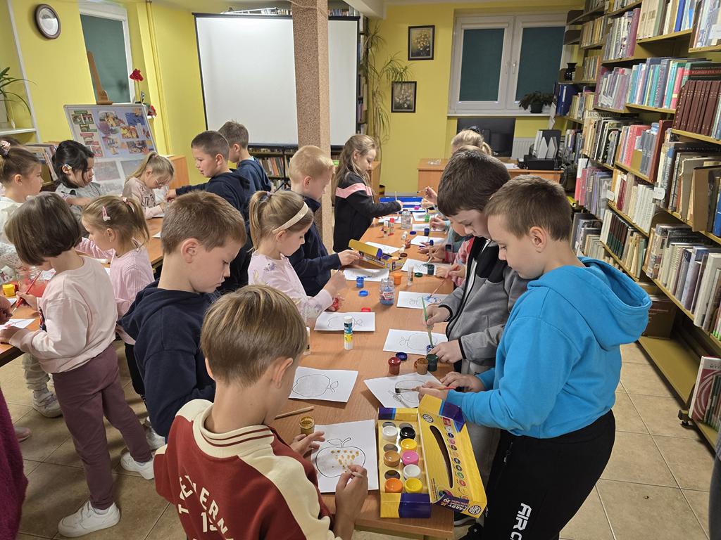 Dnia 01.10.2025 r. odwiedzili bibliotekę uczniowie ze Szkoła Podstawowa nr 2 im. Władysława Broniewskiego w Wyszkowie. Rozmawialiśmy o jesieni na podstawie opowiadania „Skarby jesieni”. Na koniec pierwszoklasiści wykonali pracę plastyczną techniką „malowanie na cukrze”.